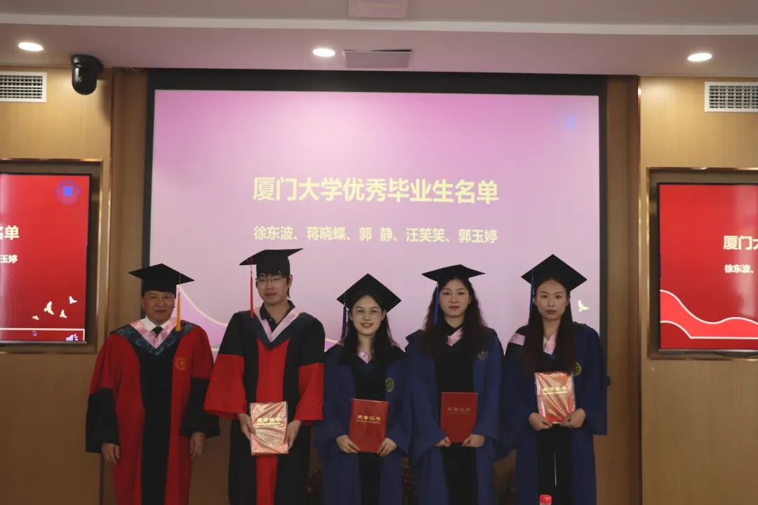在聘任毕业年级联络员环节,王洪才副院长为被聘任为厦门大学2022届年级联络员的唐琴、汪笑笑、范慧婷等三位毕业生颁发了聘书。