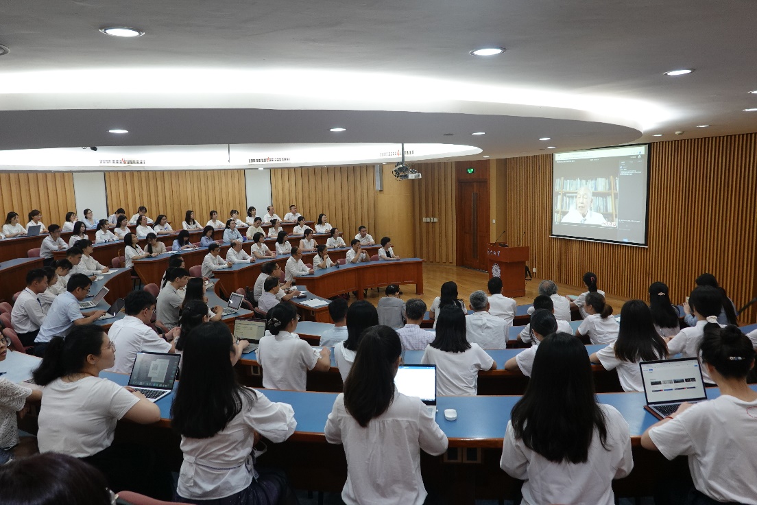 2020年6月7日上午,在科艺中心1号会议室,教育研究院开展双周政治理论学习暨师德师风讲堂。文科资深教授潘懋元先生通过网络形式以《高等学校内涵式发展的内涵与样板》为题,做了“师说课改”公益讲坛的首场报告,研究院全体师生参加了现场活动。同时,该讲坛面向全国各地的师生进行云直播。