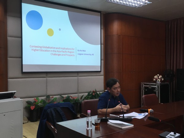 全球化是在世界范围日益凸现的新现象,是当今时代的基本特征。在此背景下,全球各国和地区的高等教育国际化程度不断提高,如何理解和应对高等教育国际化是当今高等教育领域的研究热点。2019年4月27日下午,我院邀请到岭南大学副校长、林文赞比较政策特聘教授、研究生部主任莫家豪教授,为师生作了题为“Contesting Globalisation and Implications for Higher Education in the Asia-pacific Region:Challenges and Prospects“,探究全球化给亚太地区高等教育带来的挑战和机遇。讲座由文静助理教授主持,覃红霞副院长、吴薇教授、刘梦今助理教授 陈斌助理教授等教师以及部分博硕士研究生参加了本次讲座。