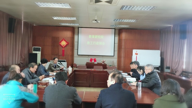 2018年2月26日上午9点,教育研究院本学期首次教工行政例会在院502会议室如期举行,本次会议由刘海峰院长主持,潘懋元先生、郑冰冰书记、史秋衡副院长、别敦荣副院长、傅伯奇副书记以及院其他教职工参加了本次会议。