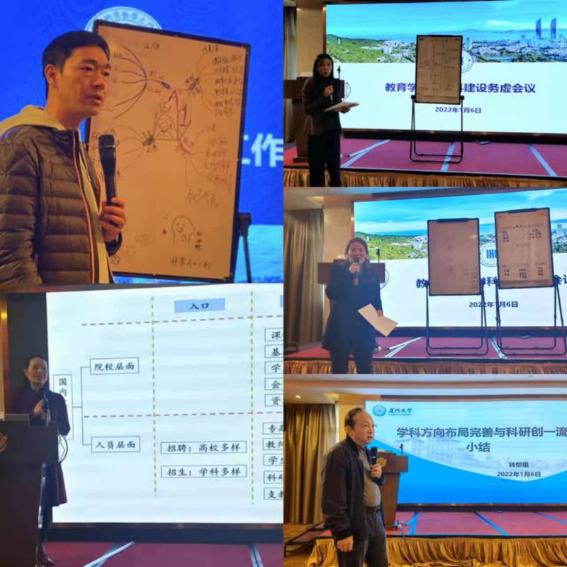 务虚会分组讨论环节共分为五个小组,每个小组用抽签的方式从五大议题中确定各自的讨论主题,老师们在不同组别中轮转,针对不同议题充分发表意见和建议,畅所欲言、各抒己见,积极贡献自己的智慧。分组讨论由厦门大学高等教育发展研究中心副主任郭建鹏主持。