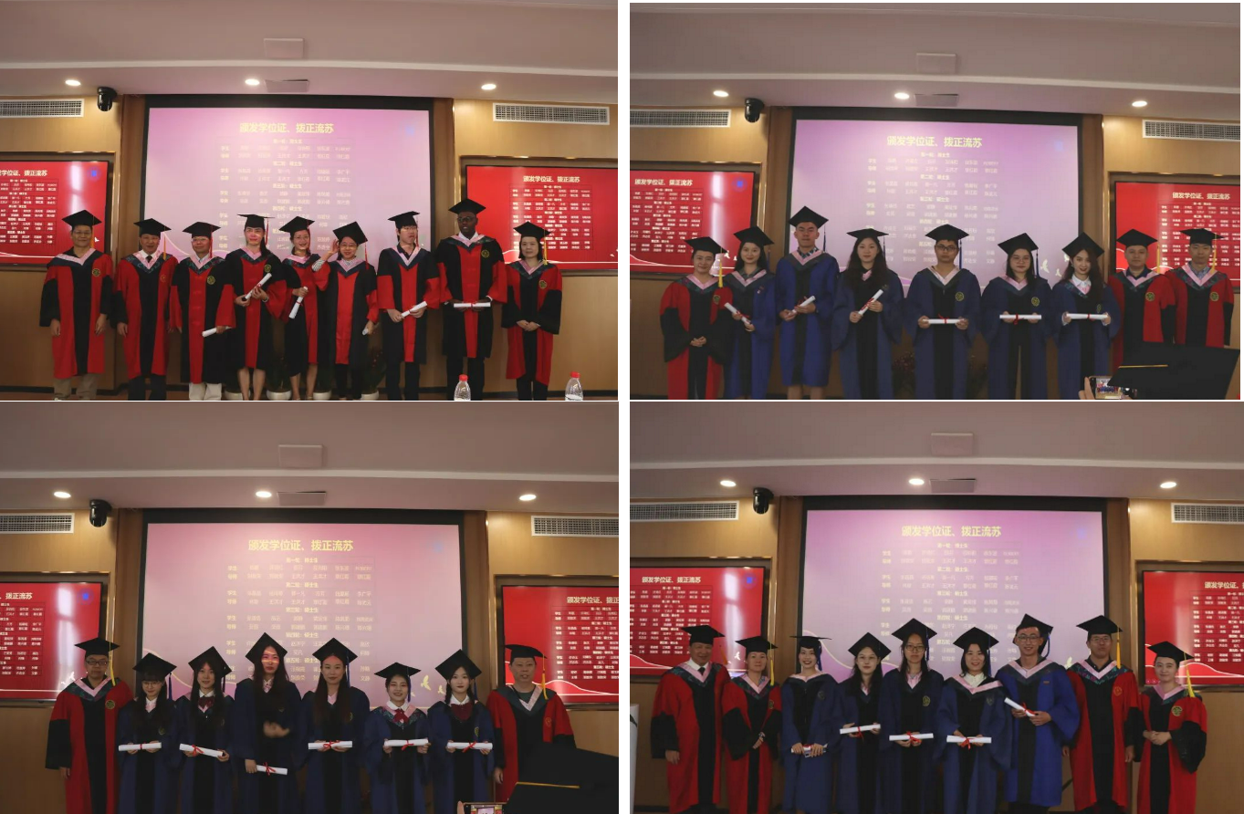 在颁发学位证书环节,副院长覃红霞教授宣读了2022届获得学位的毕业生名单。研究生导师们为毕业生颁发了学位证书,并拨正流苏。