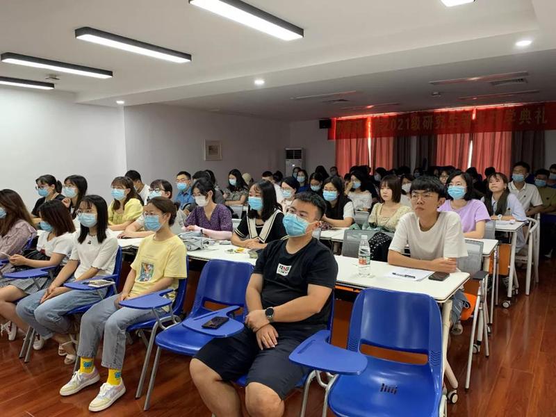 2021年9月12日下午,我院在学生公寓海韵八号楼六层大报告厅,召开了2021-2022学年第一学期注册报到会,院党委副书记姚有新、研究生秘书陈若凝和全体学生参加了会议。