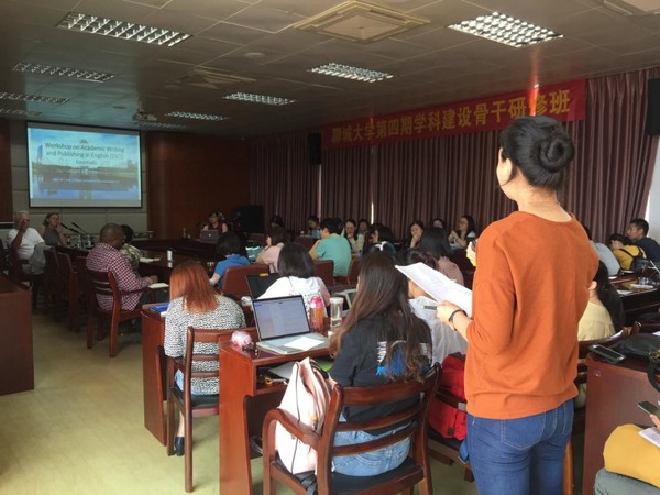 2019年4月30日上午,两位外籍专家迈克尔·A·彼得斯(Michael ·A· Peters)教授和艾米·雪佛顿(Amy Shuffelton)教授为我院师生开设了关于“英文SSCI期刊论文写作与发表”的工作坊。本次工作坊由蔡秀英助理教授主持,工作坊吸引了许多来自其他学院的师生。