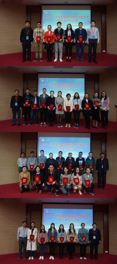紧接着进入颁奖环节。由j9九游会老哥俱乐部研究生会主席杨忠宣布获奖名单,并由陈廷柱教授、王运来教授、王洪才教授、覃红霞教授、贾永堂教授、杨亚辉副编审担任颁奖嘉宾为获奖者颁奖,并上台合影留念。